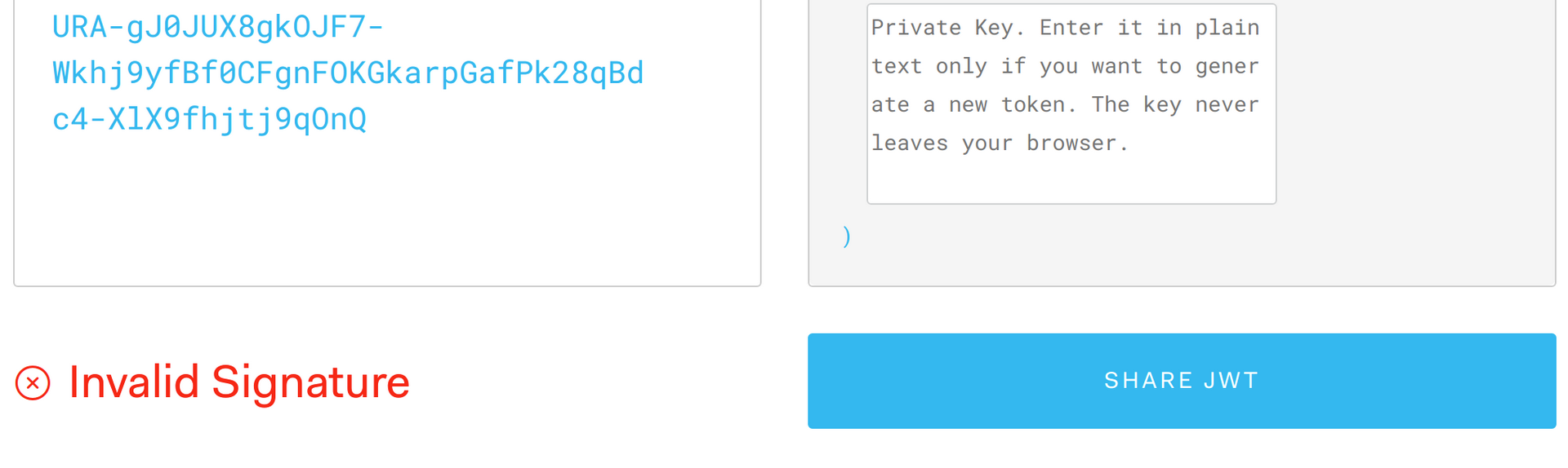 Uh-oh, if you take a look at the bottom of the token text box, you’ll notice it says Invalid Signature.
